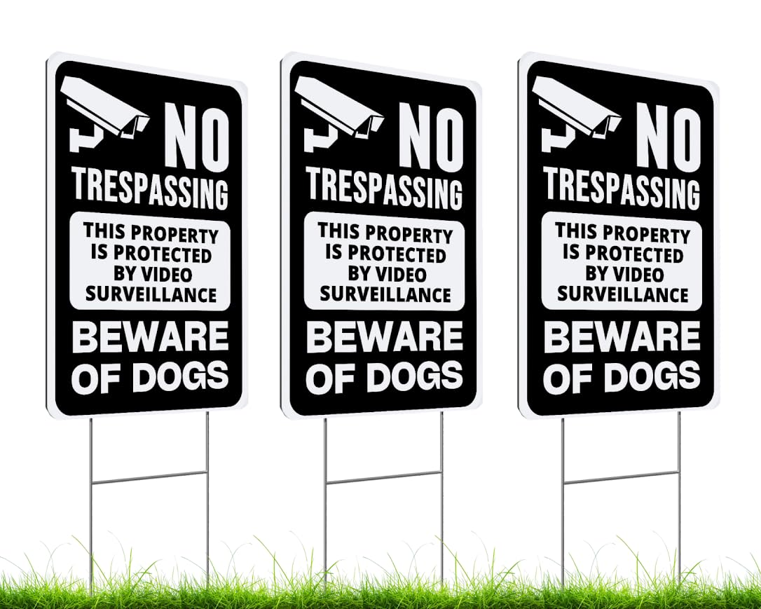 Private Property No Trespassing & Dog Pooping Deterrent Signs – Waterproof, with Metal Stakes, Ideal for Yards, Lawns, Gardens & More!
