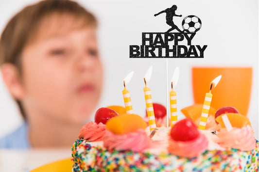 4.1x5.9 Inch Happy Birthday Soccer Paper Cake Topper - Boys or Girls Sports Cake Toppers - Football Player Cake Topper Boy Birthday Decorations - Sport Theme Man or Boy Birthday Party Supplies Decor
