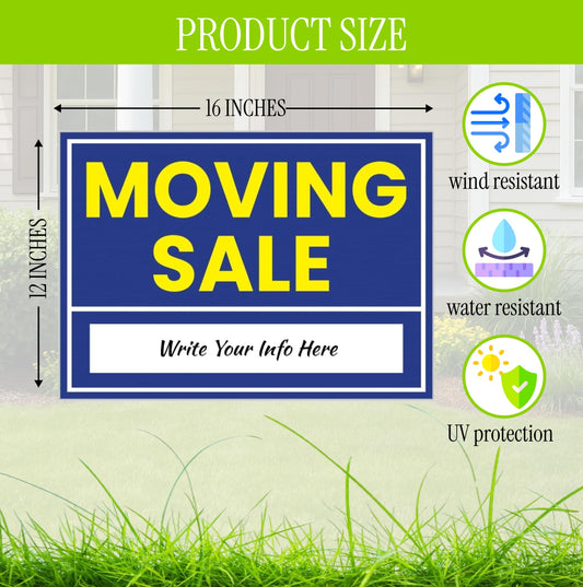 3X Double-Sided 12x16" Moving Sale Signs Kit - Real Estate Sale Sign in Plastic - For Sale by Owner Large Signage - Moving Sale Sign for Real Estate Agents - House Sale Signs With Metal Wire H-Stakes