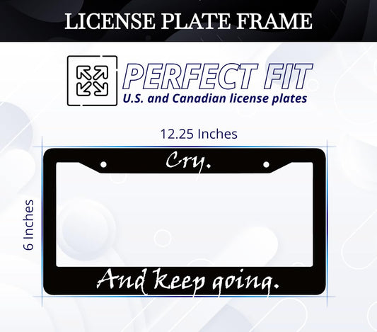 6x12.25 inch Personalized Car License Plate Frame with Motivation Quote Cry. and Keep Going - Aluminium License Plate Frame for Standard Cars USA Accessories - Plates Frames with 2 Holes and Screws