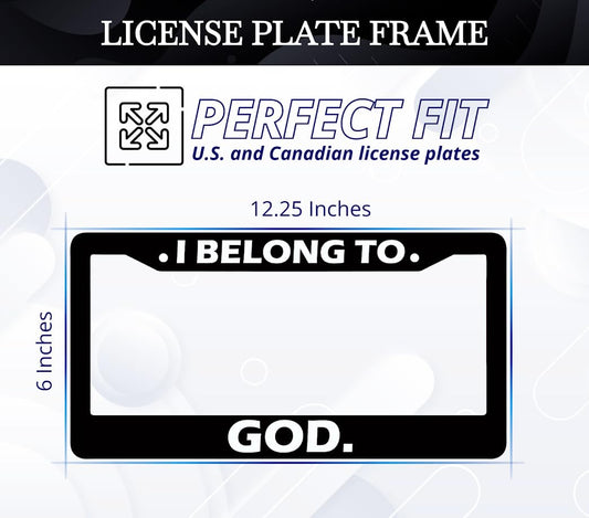 6x12.25 Inch Christian License Plate Frame with Quote I Belong to God with 2 Standard Slotted Mounting Holes and Screws - Decorated Aluminium Accessories Frame for USA Standard Cars