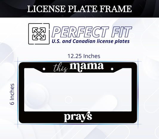 6x12.25 Inch Funny License Plate Frame with Quote This Mama Prays for Standard USA Cars - Aluminium Frames with 2 Holes and Screws - Meme Plate Frames for Your Car Accessory Driver