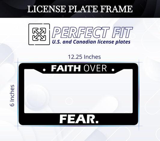 6x12.25 Inch Personalized License Plate Frame with Quote Faith Over Fear - Vintage License Plate Frames for Car Accessory with 2 Holes and Screws - Aluminium Plates Frames for Standard Cars USA