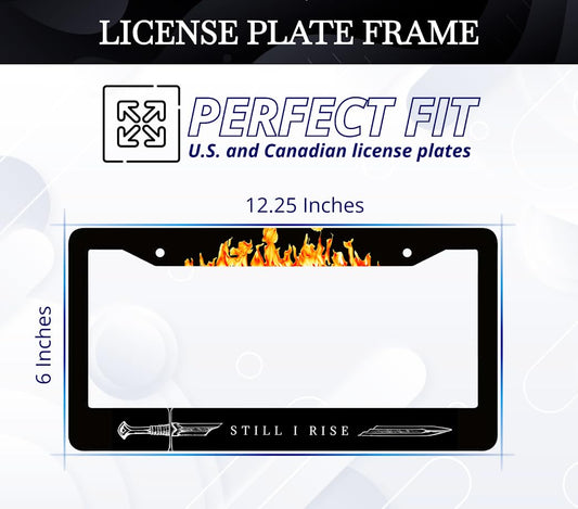6x12.25 inches Black License Plate Frame with Quote Still I Rise with 2 Holes and Screw - Decoration Standard Car USA Frame for Front - Aluminium Plate Frames with Fire Image for Car Accessories
