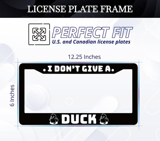 6x12.25 Inch License Plate Frame with Duckling Quote I Don't Give A Duck with 2 Holes and Screws - Aluminium Black Plate Frames Auto Accessories for USA Standard Cars - Frames for Front and Rear