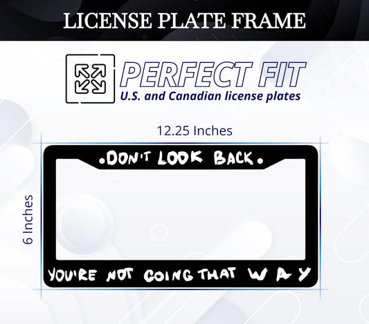 6x12.25 Inch License Plate Frame with Quote Don't Look Back with 2 Holes and Screws - Black Plate Frames Auto Accessories for USA Standard Frames for Front and Rear - Aluminium License Plate Frame