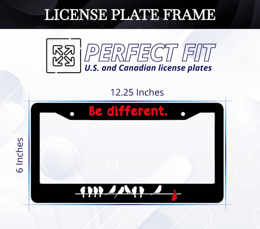 6x12.25 Inches License Plate Frame with Quote Be Different with 2 Standard Slotted Mounting Holes and Screws - Aluminium Accessories for Your Car - Decorated Frames with Birds for Your Number