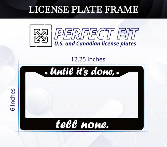 6x12.25 Inch Personalized Car License Plate Frame with Quote Until It's Done, Tell None - Black License Plate Frame with 2 Holes and Screws - Standard Cars USA Aluminium Frames for Front or Rear