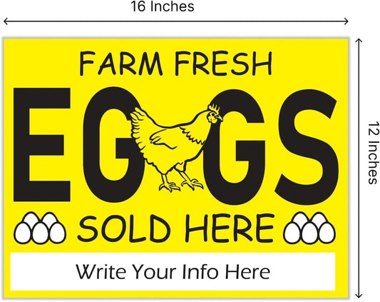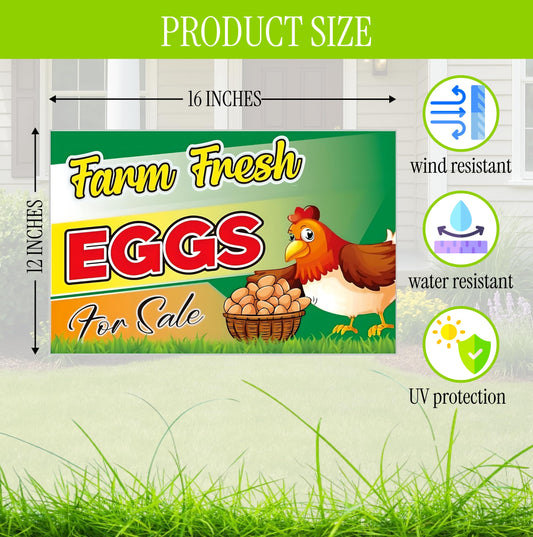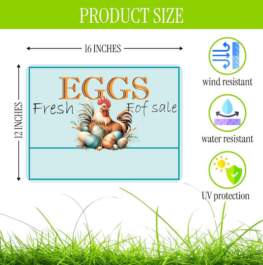 12x16 Inch 3X Double Sided Sign Farm Fresh Eggs Sold Here Yard Plastic Sign - Farm Fresh Eggs Sign With H-Stakes for Outdoor and Indoor - Fresh Chicken Eggs Sale Sign - Funny Signs Chicken Coop Décor