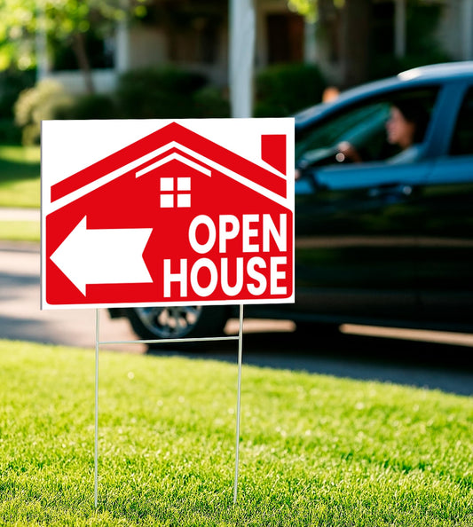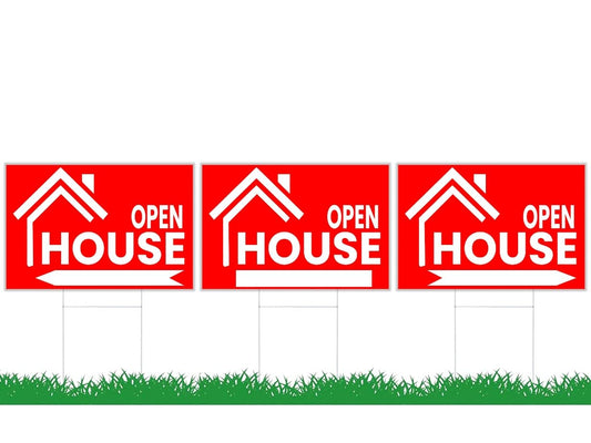 3X Single Sided 12x16 Inch Open House Signs for Real Estate Agent Supplies for Sale Plastic Sign with Stakes - Realtor Supplies for Sent Houses By Owner Yard Sign - Moving Sale Directional