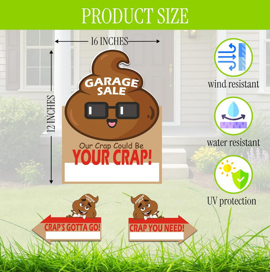 Set of 3 Double Sided 12x16 Inches Plastic Garage Sale Signs with Metal H-Stakes - Plastic for Home Yard Garage Sale Outdoors Directional Arrows Signs - Funny Sales Sign for Real Estate