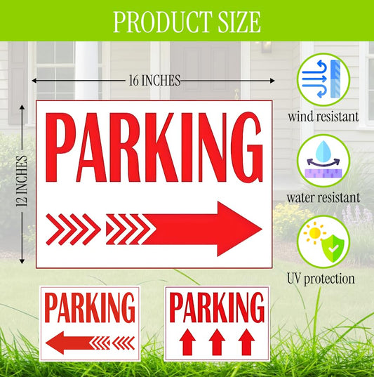 Set of 3 Double Sided 12x16 Inches Plastic Event Parking Signs with Metal H-Stakes - Yard Plastic Signs with Pointer to Parking Space - Post with Arrows Right Road Traffic Sign for Outdoor
