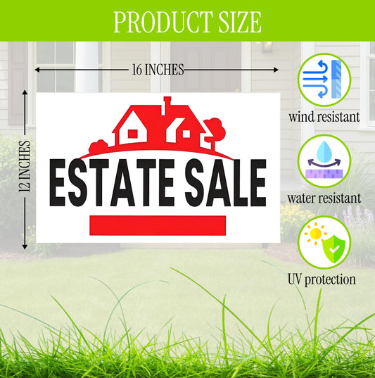 8x12 Inch 3X Double Sided Estate Sale Signs - Estate Sale Arrows Signs with Metal H Stakes - House For Sale Plastic Sign for Real Estate Agent Realtor Supplies - Real Estate Perfect for Home Owners