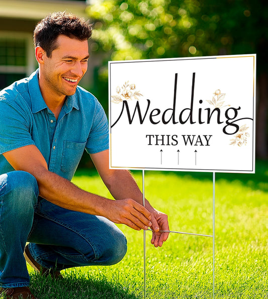 ULVEOL 12x16 inch Pack of 3 Wedding Direction Arrow Signs - Classic White Plastic Wedding Signs with H Stakes - Double-Sided Printed Arrows