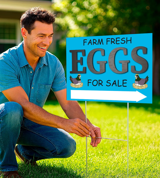 12x16 Inch 3X Double Sided Sign Plastic Eggs for Sale Yard - Farm Fresh Eggs Sign With H-Stakes for Outdoor and Indoor - Funny Signs Chicken Coop Decor - Fresh Chicken Eggs For Sale Sign for Outside