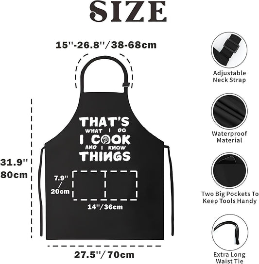 27.5x31.9 Inch Baking Polyester Aprons for Women and Men - Thats What I Do I Cook And I Know Things - Kitchen Cooking Aprons with 2 Pocket - Funny BBQ Black Chef Aprons - Birthday Gift for Baker