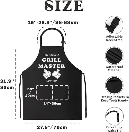 27.5x31.9 Inch Baking Polyester Aprons with 2 Pockets - This Is What A Grill Master Looks Like Prints Apron - Funny BBQ Black Chef Apron for Boys or Girls - Kitchen Cooking Aprons for Women and Man