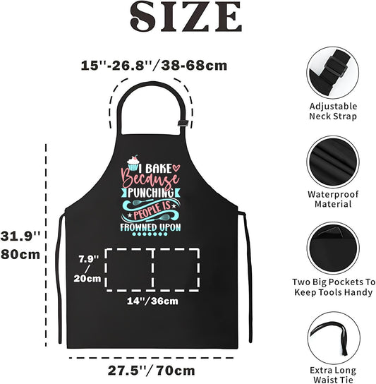27.5x31.9 Inch Baking Aprons for Women and Men - Prints for Aprons I Bake Because People Is Frowned Upon - Polyester Kitchen Aprons with 2 Pockets - Cute Gifts for Bakers - Grilling BBQ Chef Apron
