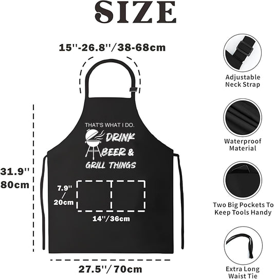 27.5x31.9 Inch Baking Aprons with 2 Pockets - Cooking Chef Polyester Apron BBQ - Thats What I Do Drink Beer and Grill Things Print for Apron - Cute Gifts for Bakers Friends - Cookings Aprons for Woman