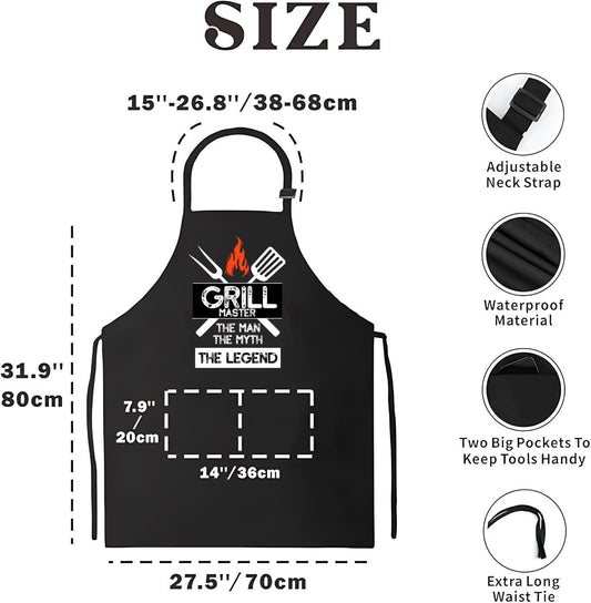 27.5x31.9 Inch Baking Aprons for Women and Men - Grill Master The Man The Myth The Legend Prints Apron - Polyester Kitchen Cooking Aprons with 2 Pocket - Funny BBQ Black Chef Aprons for Boys or Girls