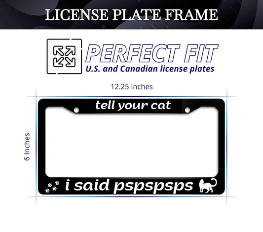 6x12.25 Inch Personalized License Plate Frame for US Standard Tell Your Cat I Said Pspspsps - Matte Black License Plate Frame - Car Accessory Decorative - Metal Plate Frame with 2 Holes and Screws