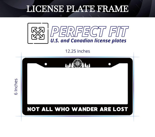 Personalized Car License Plate Frame Not All Who Wander are Lost - Mountains Compass License Plate Frame Stainless Steel - Metal Plate Frame with 2 Holes and Screws 6x12.25 inches for US Standard