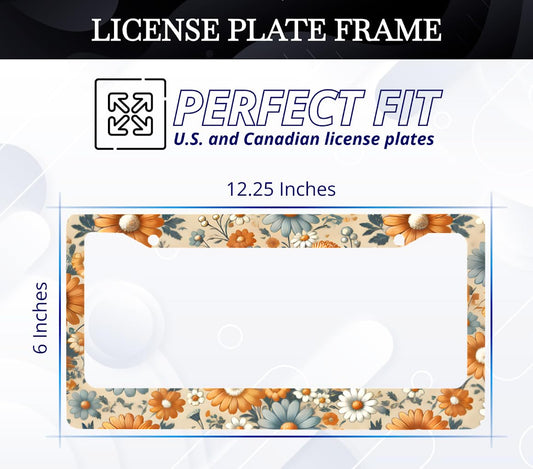 Car License Plate Frame for US Standard 6x12.25 Inch - Stainless Steel Frame - Floral Retro Daisys License Plate Frames Frames with 2 Holes and Screws - Accessory for Car