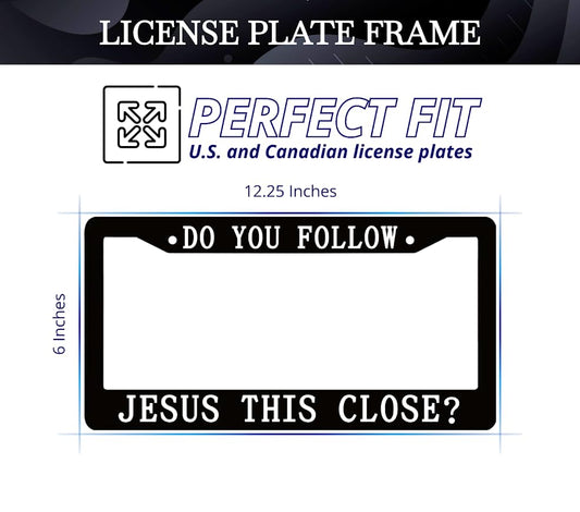 Personalized 6x12.25 Inch Car License Plate Frame with 2 Holes and Screws Do You Follow Jesus This Close? - Metal License Plate Frame Front Plates or Frames Car Frames for Women Men for US Standard