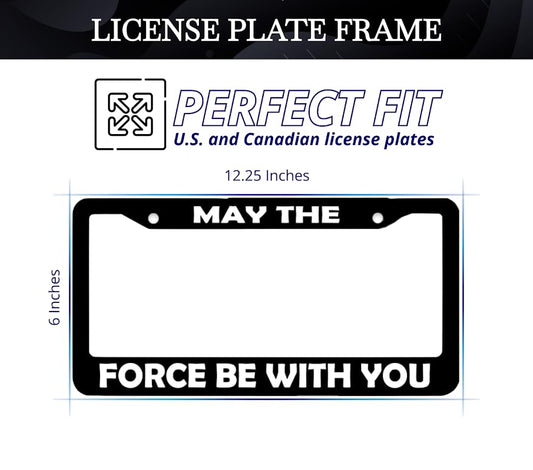 Car License Plate Frame May The Force Be - Standart Cars USA Stainless Steel Frame for Front and Rear - Plate Frame License - Metal Plate with 2 Holes and Screws 6x12.25 inches