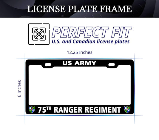 6x12.25 Inch Car License Plate Frame 75th Ranger Regiment US Army - Aluminum Metal License Plate Frame with 2 Holes and Screws - Bracket for Standart Cars USA Stainless Steel Frame for Front or Rear