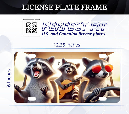 6x12.25 Inch Funny Raccoon License for US Standard Plate Frame - Fun Car Frames with 4 Holes and Screws - Accessories Decorative License Plate Frames - Personalized Plates Frame for Front of Car
