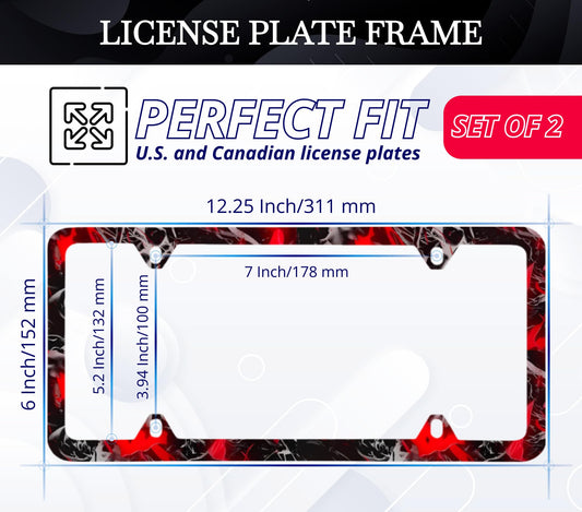 Set of 2 Blood Splattered Black License Plate Frame - Metal Black Car Frames with 4 Holes and Screws - Standart Cars USA Frame for Front or Rear - Black Plate Frame 6x12.25 inches