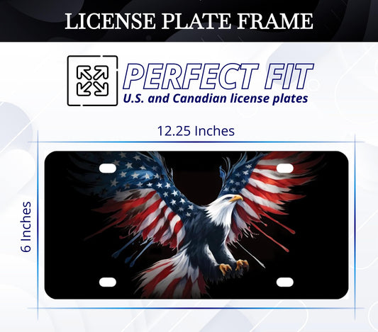 6x12.25 Inch USA Flag American Bald Eagle License Plate Frame with 4 Holes and Screws - Personalise Car Front License Plate Frames Stainless Steel - Standart Cars USA Frame for Front