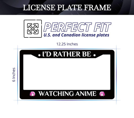 Personalized Car 6x12.25 Inch License Plate Frame I’D Rather Be Watching Anime - Stainless Steel License Plate Frame Holder Accessory - Decorative US Standard Licenses Plate 2 Holes and Screws Fits