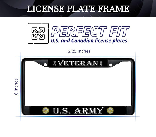 Car License Plate Frame - License Plate Frame US Army Veteran - Standart Cars USA Stainless Steel Frame for Front and Rear - Metal Plate Frame with 2 Holes and Screws 6x12.25 inches