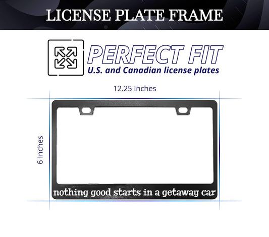 Personalized Car License Plate Frame with 2 Holes and Screws Nothing Good Starts in A Getaway Car - Standart Cars USA Stainless Steel Frame for Front and Rear - Metal Plate Frame 6x12.25 inches