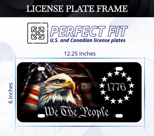 6x12.25 Inch American Vanity Aluminum Car License Plate Frame with 4 Holes and Screws for Front We The People - 1776 Eagle License Plate Frames Car Universal Accessories - Standart Cars USA Frame