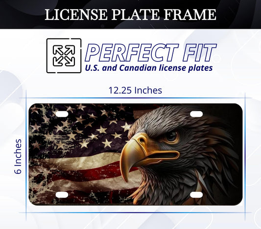 6x12.25 Inch Personalized American Flag Eagle License Plate Frame with 4 Holes and Screws - Vintage Flag License Plate Frames for Car Accessory - Stainless Steel Standart Cars USA and Canada Frame