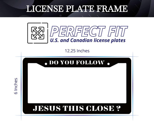 6x12.25 Inch Cool License Plate Frame with 4 Holes and Screws Do You Follow Jesus This Close? - Funny License Plate Frames for US Standard Auto Accessory Bracket Stainless Steel
