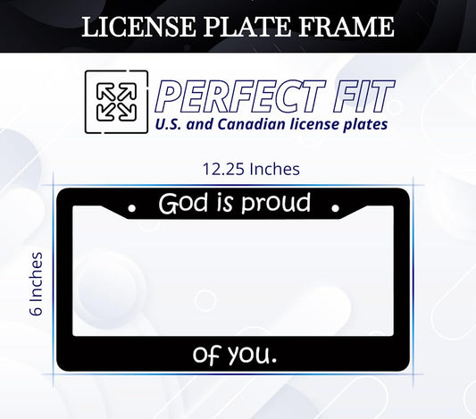 6x12.25 Inch God License Plate Frame for USA Standard God is Proud of You with 2 Holes and Screws - Fun Frames for Cars Accessories - Decorative Aluminium License Plate Frames for Front or Rear