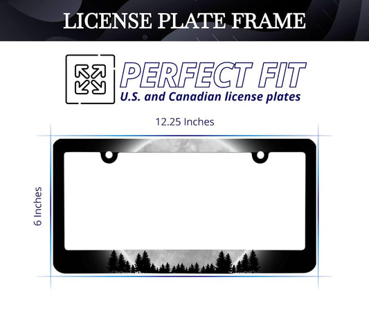 Full Moon Forest License Plate Frame with 2 Holes and Screws - Funny License Plate Frames Decorative - Cars for US Standard Frame for Front and Rear - Metal Plate Frame with Screws 6x12.25 inch