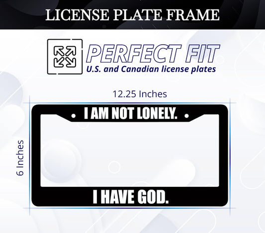 6x12.25 Inch Christian License Plate Frame with Quote I Am Not Lonely. I Have God with 2 Holes and Screws - Aluminium Plate Frames Auto Accessories for USA Standard for Front and Rear