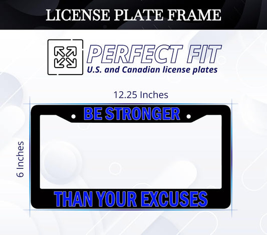 6x12.25 Inch Personalized Car License Plate Frame with Quote Be Stronger Than Your Excuses with 2 Holes and Screws - Aluminium Frame for Front and Rear - Auto Accessories Decorative for US Standard
