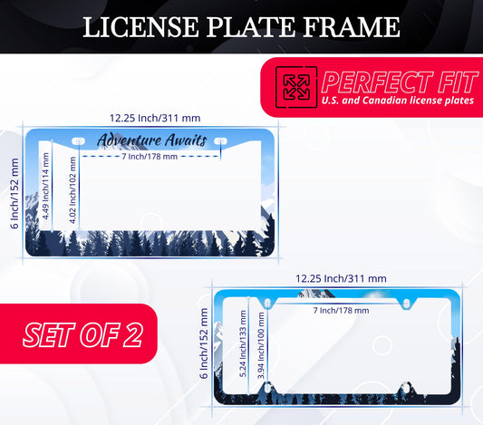 Set of 2 Personalized Car License Plate Frame Adventure Awaits - Metal License Plate Frame Car Universal Accessories - Stainless Steel Plate Frame with Screws 6 x 12.25 inches and 2 Holes and Screws