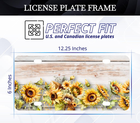 6x12.25 Inch Sunflower Butterfly License Plate Frame - Flowers Insect Stainless Steel License Plate Frames with 4 Holes and Screws - Funny for Car Decorative for Women or Men - US Standard Frame
