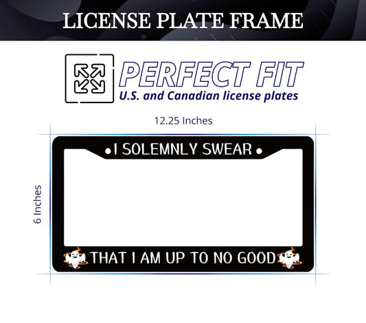 Car License Plate Frames with 2 Holes and Screws Frame I Solemnly Swear That I Am Up to No Good - License for US Standard Plate Frame Car Universal Accessories - Metal Plate Frame 6x12.25 inches