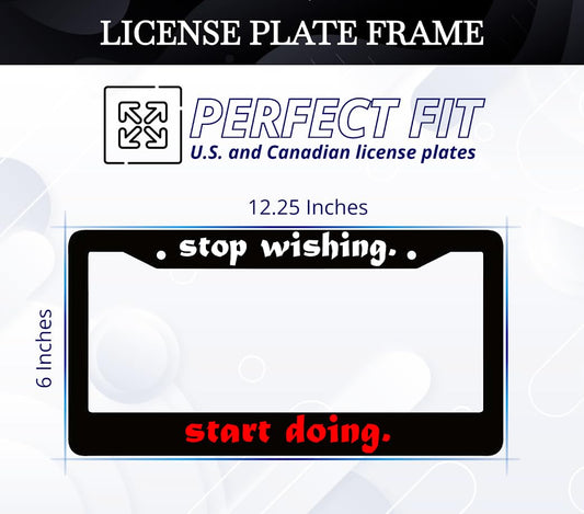6x12.25 Inch License Plate Frame with Quote Stop Wishing, Start Doing for USA Standard Cars - Aluminium Frames with 2 Holes and Screws - Frames for Your Car Accessory Driver