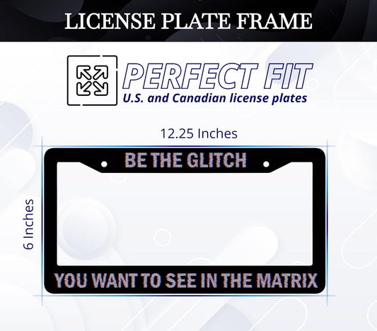 6x12.25 Inch Personalized Car Black License Plate Frame with Quote Be The Glitch You Want to See in The Matrix - Aluminium License Plate Frame with 2 Holes and Screws for Standard Cars USA