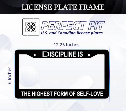 6x12.25 Inch Car Black License Plate Frame with Quote Discipline is The Highest Form of Self-Love - with 2 Holes and Screws - Aluminium License Plate Frame for Standard Cars USA for Front or Rear