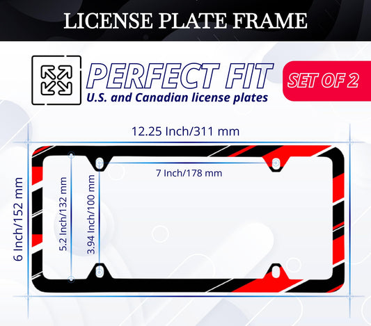 Set of 2 Personalized Car License Plate Frame for US Standard Frame with Red and Black - Stainless Steel Plate Frame with Screws 6x12.25 inches and 4 Holes and Screws - Decorative Frames for Auto